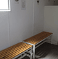 En el segundo sector, se ubican 6 duchas individuales con receptáculos de 0.70 x 0.70 metros, cada una con sus propias divisiones para garantizar intimidad, junto a 2 bancas de estructura metálica con cubierta de madera para facilitar el cambio de ropa o el uso de equipos personales. Todo el módulo está equipado con ventilación forzada y natural, aislación térmica, iluminación LED, sistema eléctrico completo y terminaciones resistentes al agua y al uso continuo.